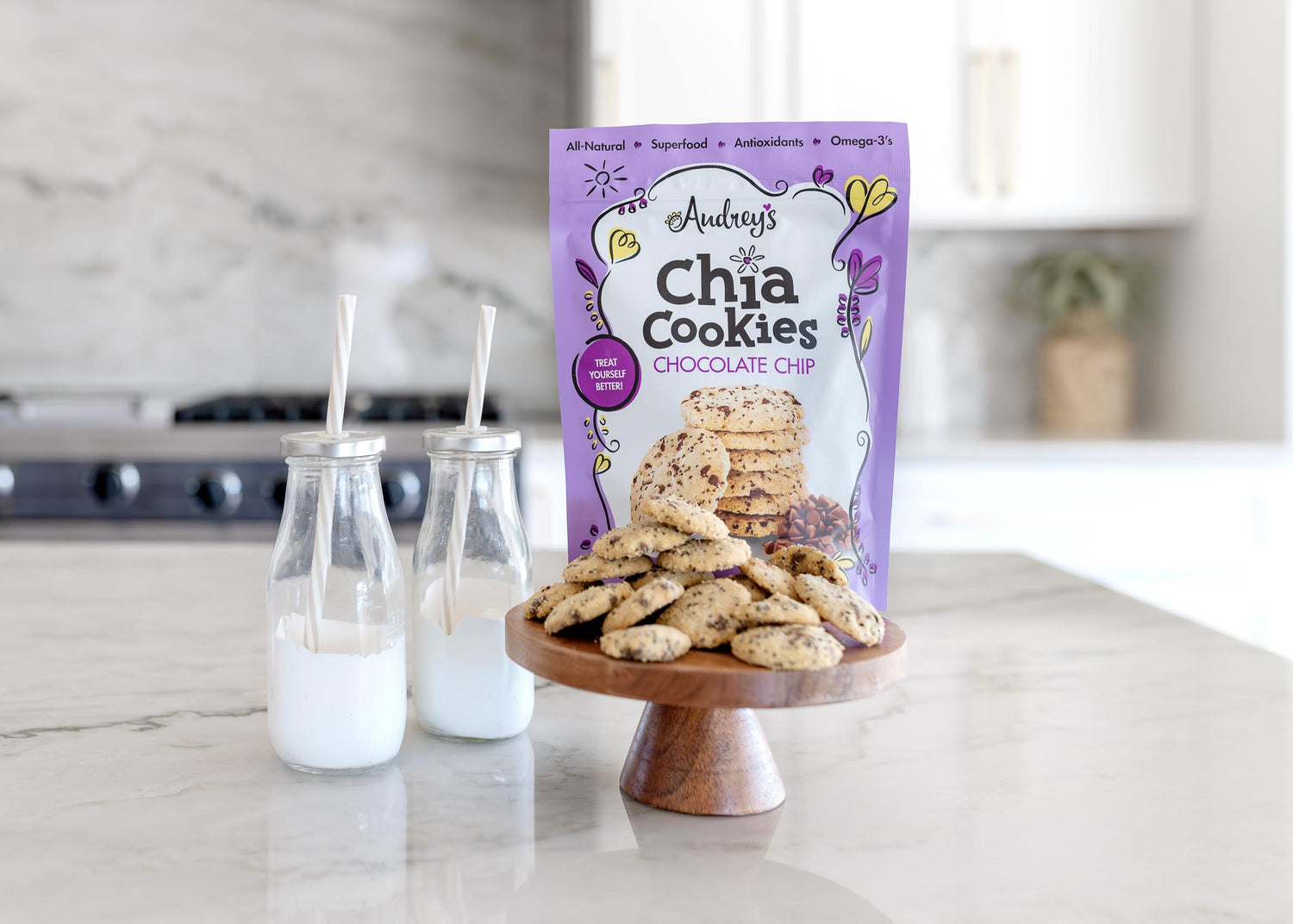 Audrey's Chia Cookies blend all-natural ingredients with the functional benefits of chia seeds, delivering a Better-For-You cookie that fuels your body while satisfying your sweet cravings. Unlike ordinary cookies, our chia-packed treats provide the nourishing power of superfoods in every bite, making indulgence a little healthier and a lot more delicious.